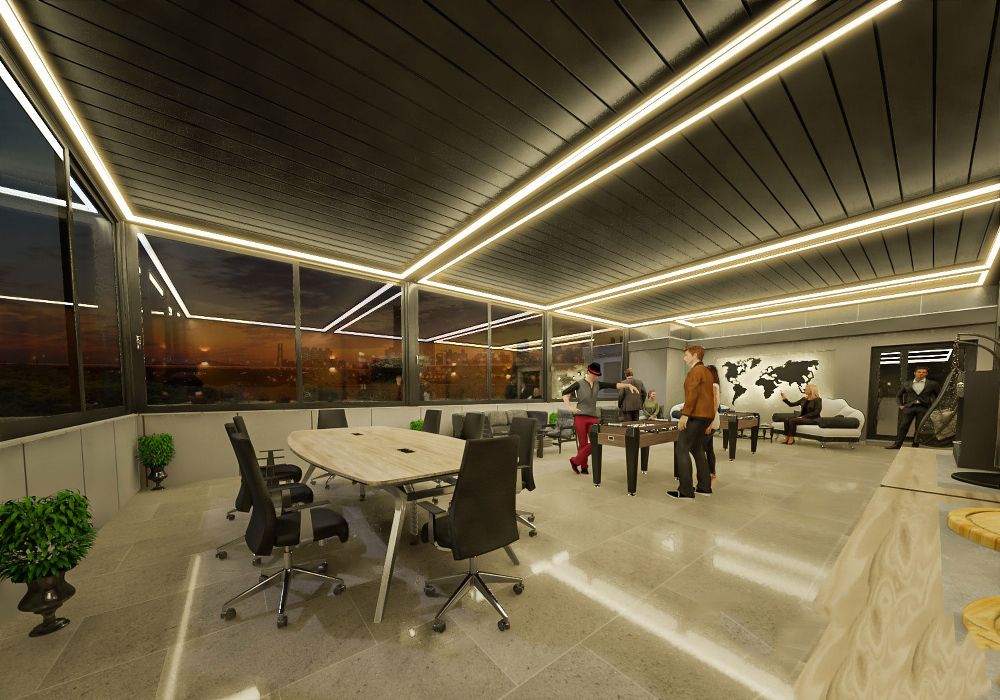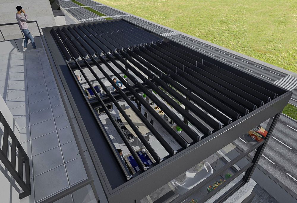 - Fonksiyonel ve Estetik Tasarım: Modern ve şık bir görünüm sunar. Genellikle pergola, teras, restoran, kafe ve kış bahçesi gibi alanlarda kullanılır. Uzaktan kumanda ile kontrol edilebilir ve bazen LED aydınlatma gibi ek özelliklerle donatılabilir.